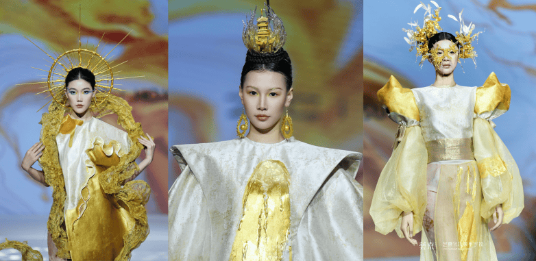 压轴登场的“东方色彩之谜”大秀,更是将整场盛典的氛围推向顶点。艺素化妆学校的老师们深度溯源秦汉雄浑、魏晋玄远、盛唐磅礴与两宋雅致四大美学巅峰,跳出形制复刻的桎梏,以“取魂弃壳”的创作巧思,完成了一场“传统美学当代解构”的惊艳实践。