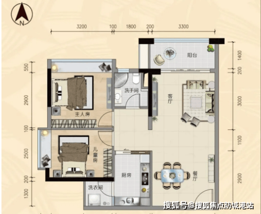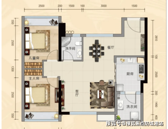 1. 69㎡两房两厅一卫:该户型格局方正,南北通透,采光通风效果俱佳。采用客厅-餐厅-厨房一体设计,布局合理,动静分区明确,提升了空间利用率。主卧自带大飘窗,推窗即可奢享珠江一线江景,让小户型也能拥有优质景观视野。